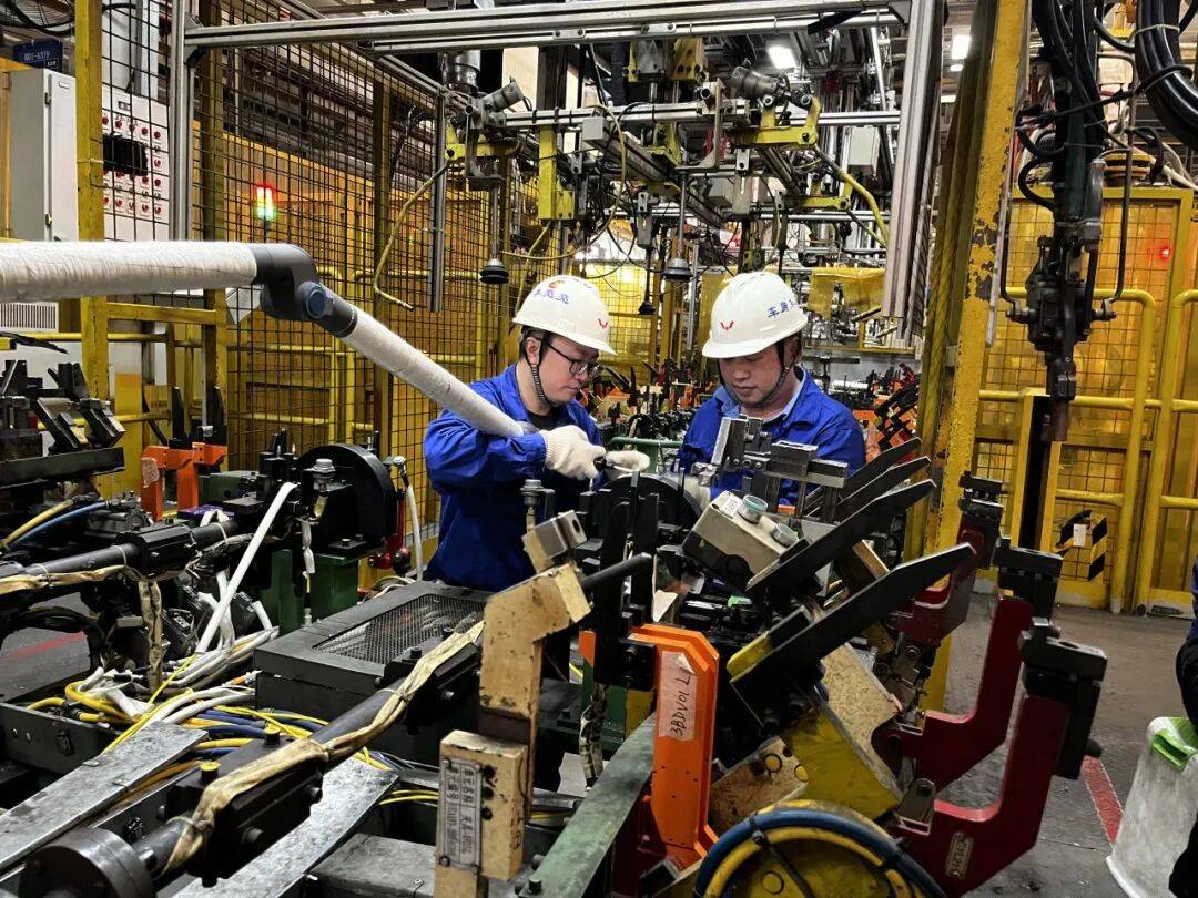 智能智造部与各基地联动,支持新产线快速高质量投入使用。车身工程科优化视觉系统、IGV路线及机器人轨迹等关键环节;涂装工程科完成宝骏、河西基地设备改造与工艺升级;总装工程科实现冷却液切换、产线改造及节拍提升。面对时间紧、任务重、人员短缺等挑战,全员主动放弃休假,以“假期不停工、全天候守护”的担当,突破项目瓶颈。