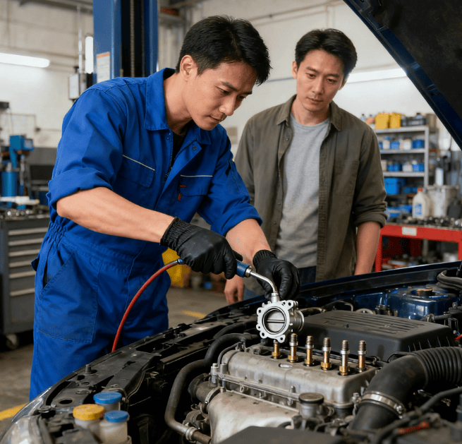 上周六,张先生拉着发小去郊外爬山。以前爬坡时,他得把油门踩到底,发动机发出嗷嗷的叫声,速度却上不去。现在轻轻一点油门,车子就轻松往上冲。发小还一个劲地问他:“你是不是偷偷给车子改装了什么?怎么变得这么有劲了?”张先生听了哈哈大笑,告诉他就是清理了节气门和火花塞,发小还一脸不信,说下次自己的车也得去清理清理。