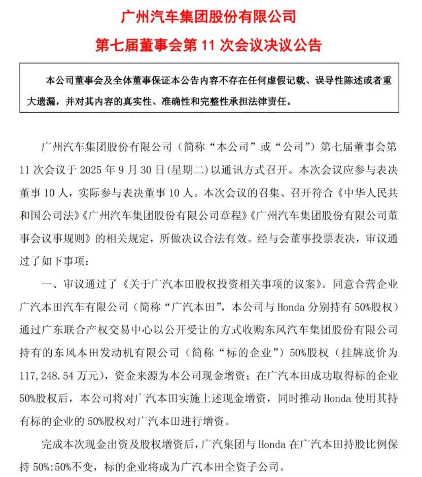 近日,汽车行业一则股权交易引发关注——广汽集团对外宣布,旗下广汽本田将以11.72亿元的价格,收购东风汽车集团持有的东风本田发动机有限公司(以下简称“东本发动机”)50%股权。交易完成后,这家长期为广汽本田提供核心动力支持的企业,将正式成为广汽本田的全资子公司。