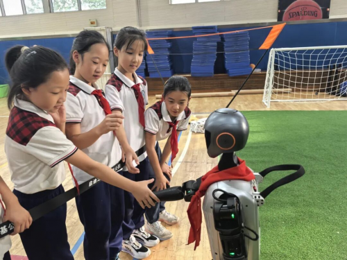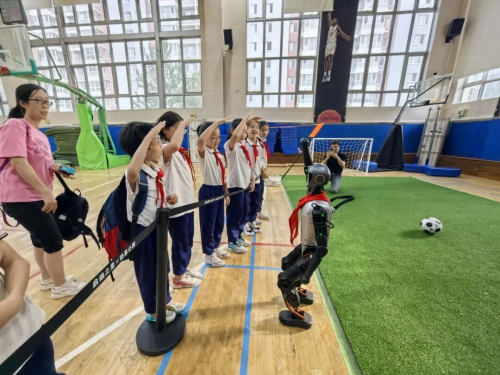 开幕式结束后,硅基公园在学校体育馆搭建了主题为“未来已来——人工智能与具身智能主题体验馆”,各类AI大模型体验项目和机器人展区引人入胜。机器狗接力赛场上,装载智能程序的机器狗在同学们的操纵下敏捷穿梭于锥桶障碍间,精准完成接力动作,引发围观学生阵阵喝彩。机器人飞花令项目则生动呈现出文理交融的魅力。机器人精准识别语音并应答诗句,偶尔出现的趣味性误差更激起全场善意的欢笑。“原来机器人能和我们共诵古诗!”来自景山学校远洋分校六年级学生雀跃道,“这让我真切感受到传统文化与科技的交融之美。”
