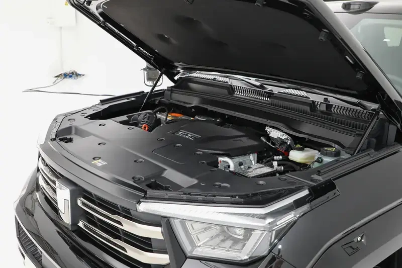动力系统实现双平台布局,满足不同场景需求。Hi4-Z版本搭载2.0T发动机与P2、P4双电机组合,匹配3挡DHT加无级变速箱,系统综合最大功率达640千瓦,配备59.05千瓦时电池组,WLTC纯电续航200公里,兼顾城市通勤的低能耗与轻度越野的脱困能力。Hi4-T版本则采用2.0T发动机加单电机配置,保留机械四驱结构与大梁底盘,搭载37.1千瓦时电池组,纯电续航105公里,更适合硬核越野场景。两款动力均提供185千瓦发动机最大功率,但电机配置与驱动形式形成差异化竞争。
