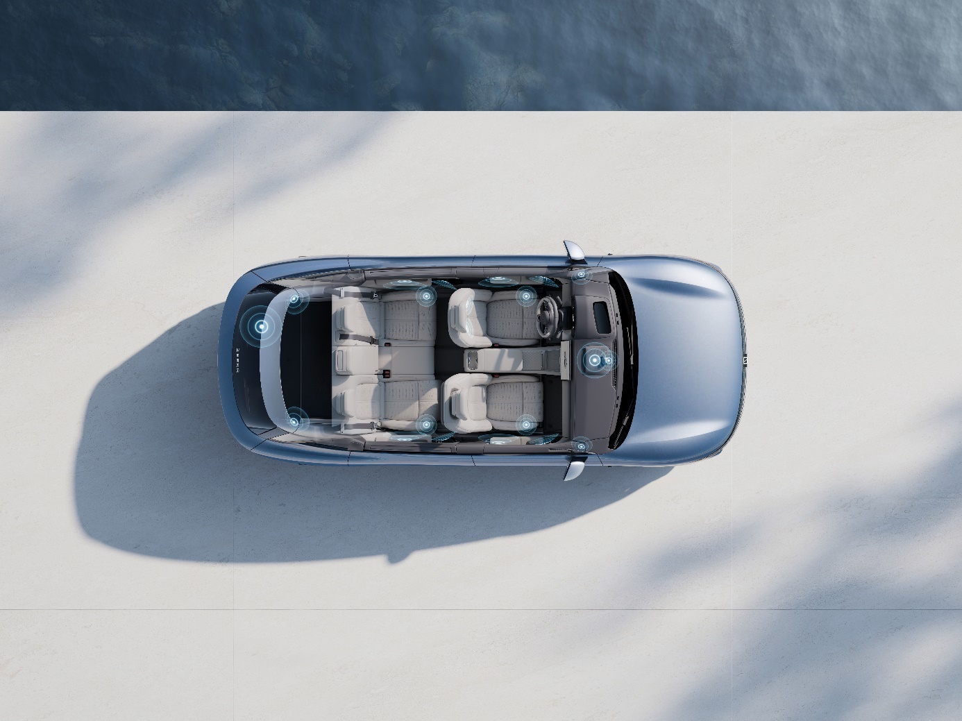 内饰方面,立柱与顶棚采用麂皮绒材质包覆,搭配四门双层夹胶静音玻璃,营造出静谧舒适的驾乘环境。新增黑紫、黑橙两种配色方案,满足个性化需求。听觉体验上,全栈自研的ZEEKR Sound Pro音响系统标配21个扬声器,搭载0.03mm超薄钛振膜与2160W峰值功率,支持7.1.4声道杜比全景声,经AI调音与金耳朵团队优化,为全家带来沉浸式音效。