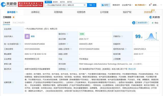 一汽—大众汽车有限公司与成都捷龙重振汽车科技有限公司近日携手成立新公司——一汽大众捷达汽车科技(四川)有限公司,此举标志着双方在汽车产业领域的合作迈入新阶段。新公司法定代表人为聂强,注册资本高达30亿元人民币,业务范围广泛,涵盖汽车零部件及配件制造、电动机制造、智能车载设备制造以及道路机动车辆生产等多个领域。