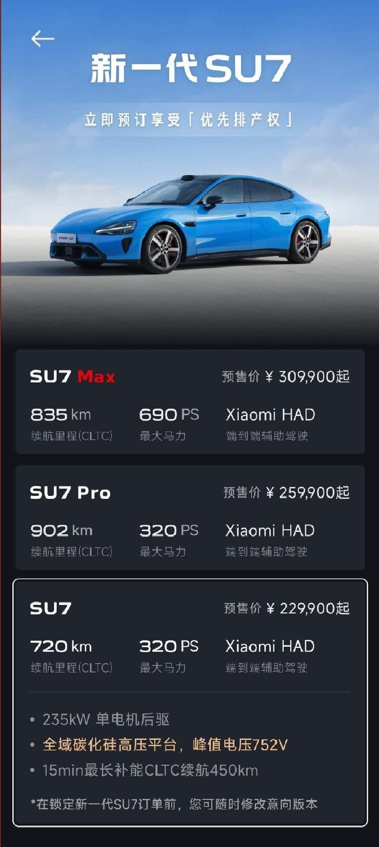 小米汽车近日对外公布了旗下新一代SU7的官方售价,起售价格定为22.99万元。这一消息迅速引发市场关注,成为汽车行业热议的话题之一。