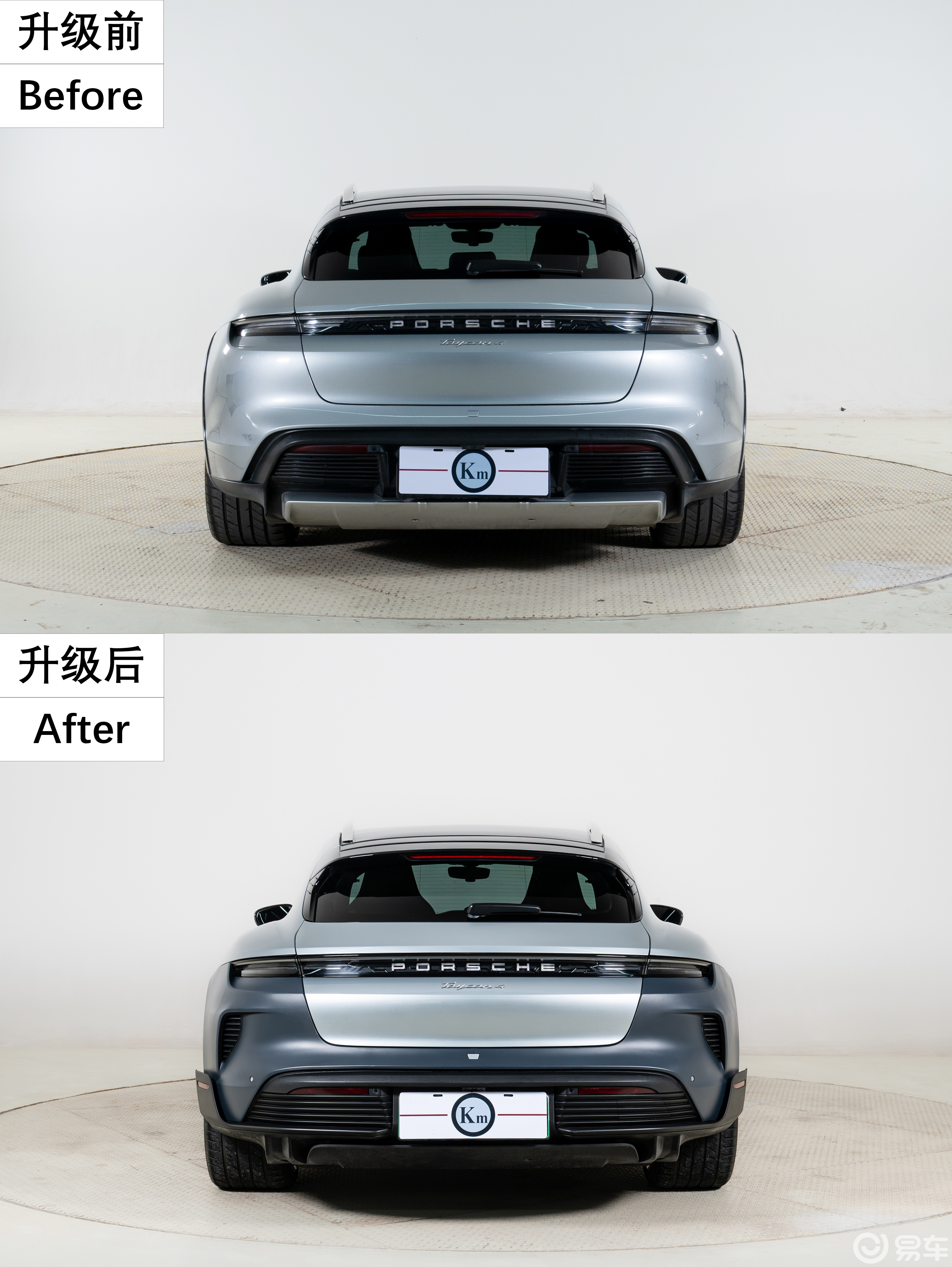 在设计细节上,升级套件保留了原车大灯,仅对前包围进行优化。据介绍,9J1.1车型即使不更换大灯,视觉效果也能达到原厂Turbo GT的九成,且其大灯设计被认为比9J1.2版本更具层次感,与新套件搭配后更显协调。车尾部分,改款后的Taycan整体变化不大,但Turbo GT版本通过在后杠两侧增加导风口,进一步强化了运动气息。