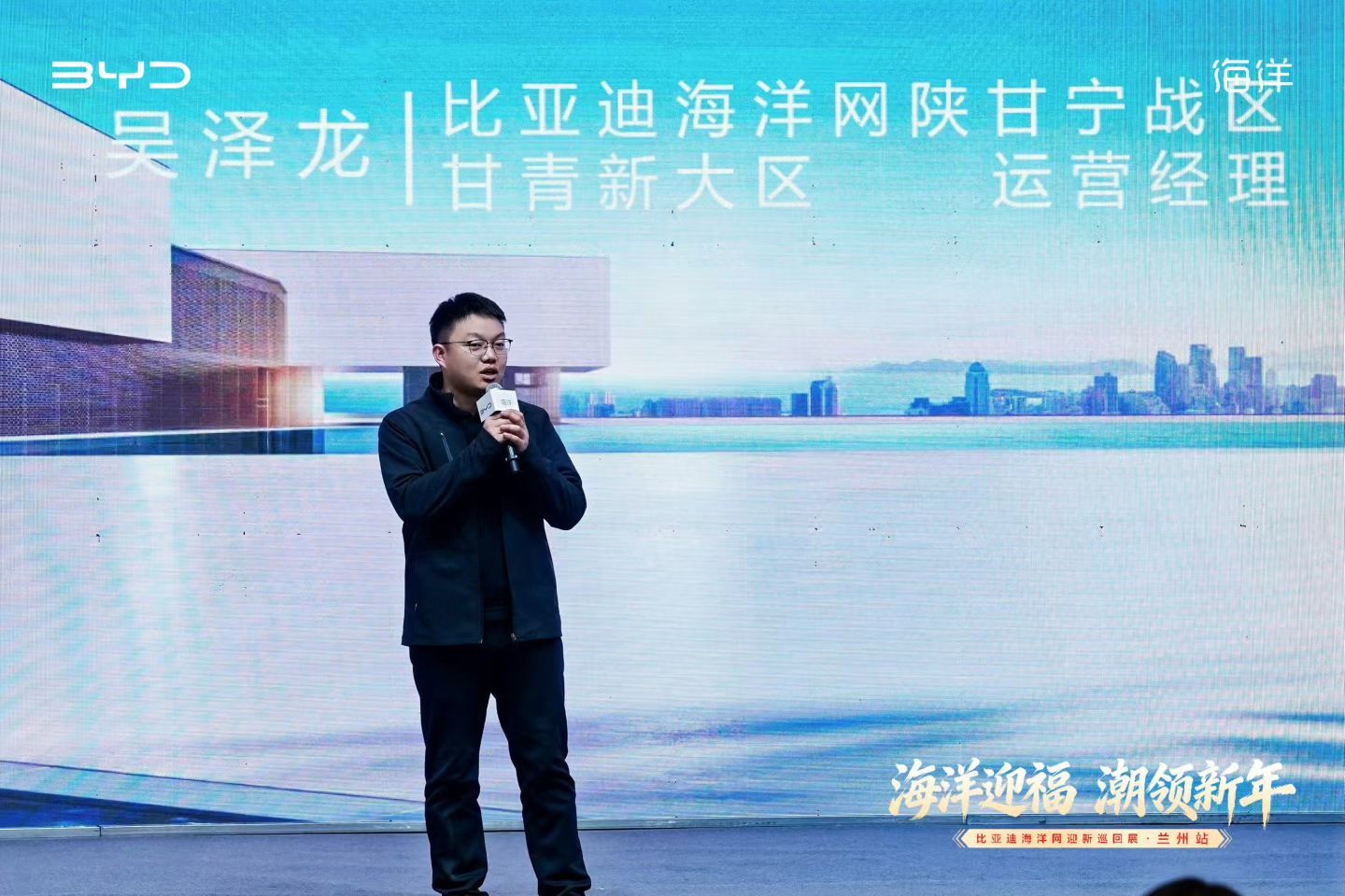 比亚迪海洋网陕甘宁战区甘青新大区运营经理吴泽龙登台发表致辞。他指出,西北市场在比亚迪新能源战略布局中占据着举足轻重的地位。当下,西北消费者对于长续航、高性价比新能源车型的需求愈发迫切。此次2026款海豹05DM-i&海豹06DM-i超享版210KM长续航车型的加推,正是比亚迪顺应市场需求,为金城消费者精心打造的绿色出行新方案,旨在让消费者以更低的成本享受更无忧的出行体验。